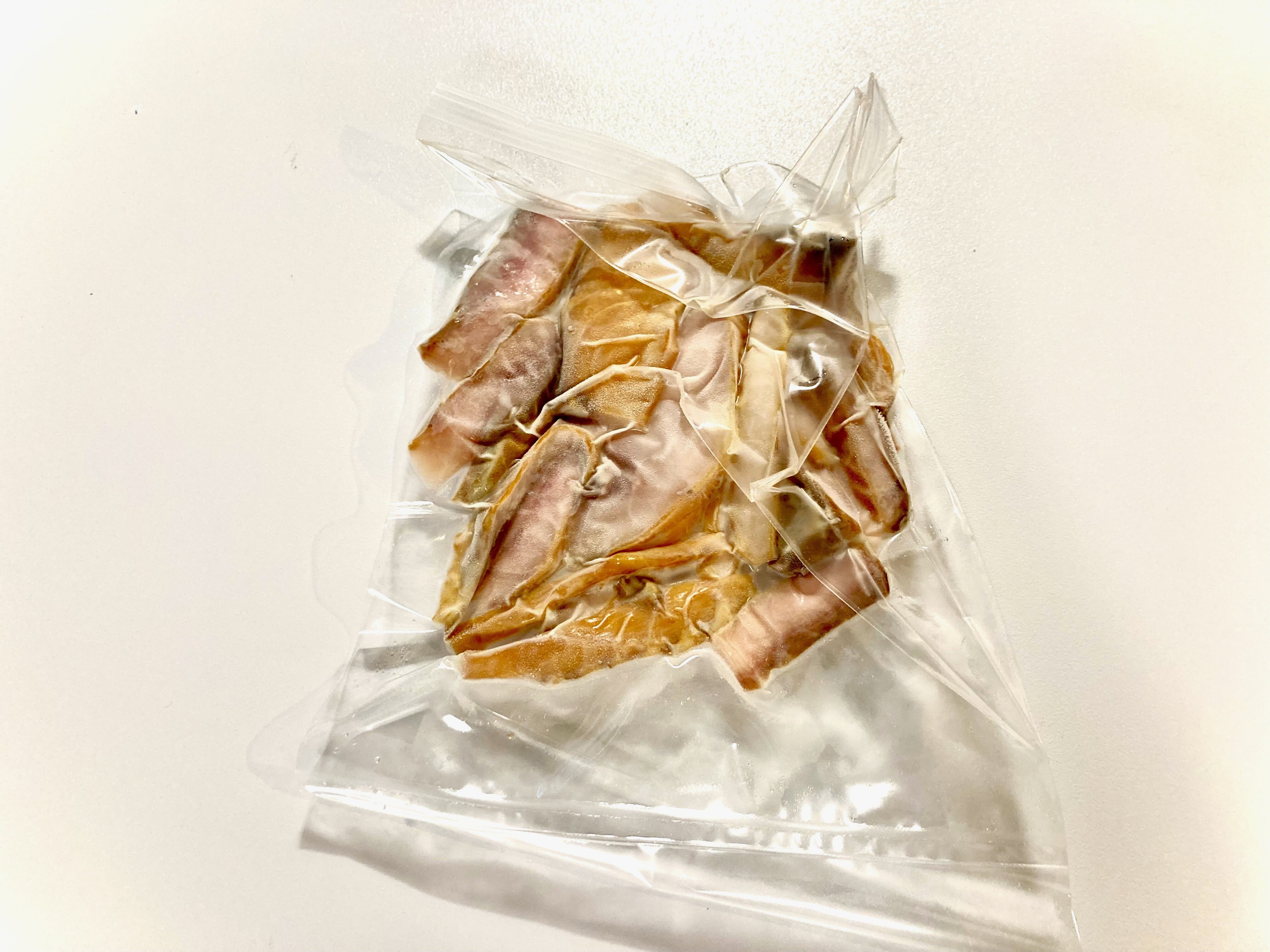 スモークチョウザメを製造する際の切り落とし商品のため、形は不揃いですが味は正規品と変わりありません。